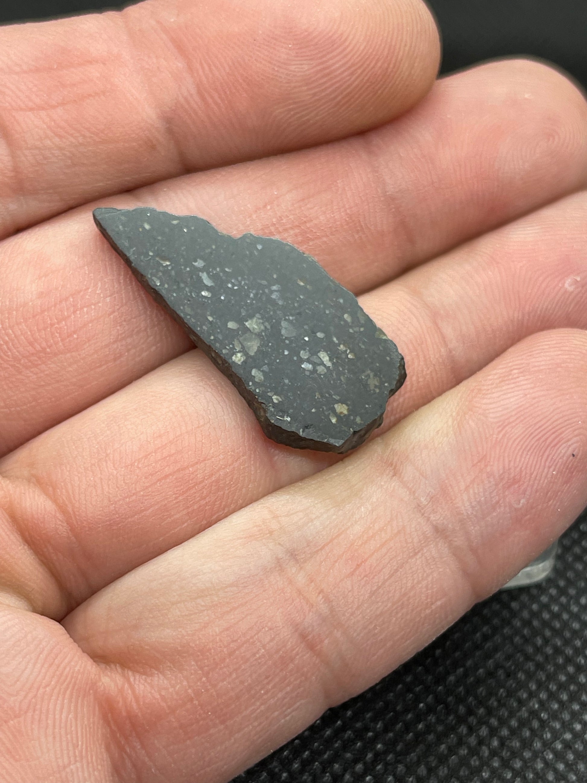 Here is a great, uniquely dark slice of the Moon! Polished on one side this piece is unlike other lunar material out there. Classified as NWA 13185 a Lunar feldspar breccia. It weighs 2.44 grams and it’s longest dimension is 1.25 inches. Acquired from M. Stream the listed owner on the Meteorite Bulletin. This comes in a rectangle gem box that measures 2 by 1.25 inches.