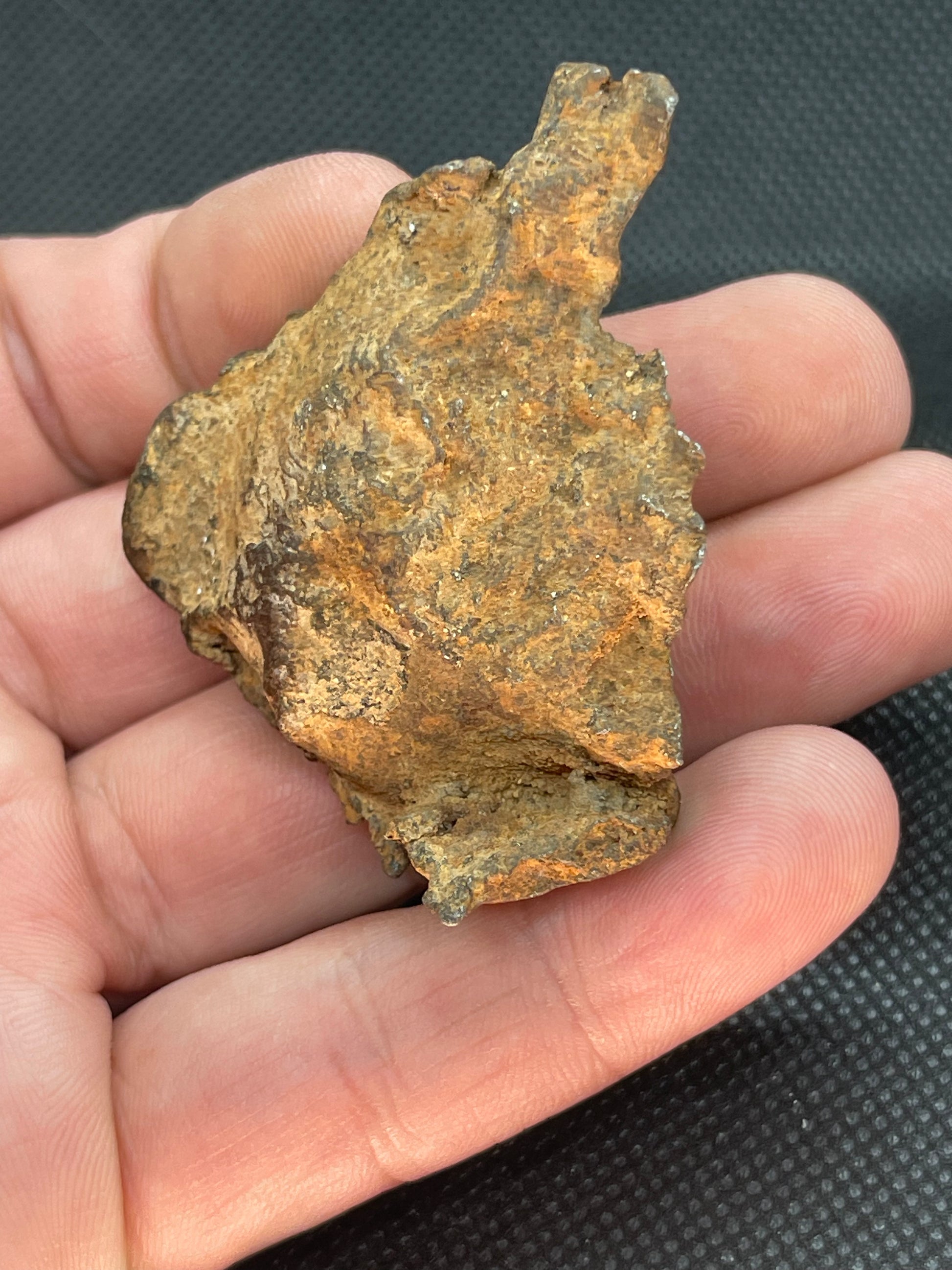 Here is a complete chunk of shrapnel from the crater maker found in Egypt. Estimated to have crashed on earth 5000 years ago. Classified as an Ungrouped Ataxite. This is uncleaned so the buyer can leave as is or give it a brushing for a nice cleaned specimen. This piece weighs 91.1 grams is roughly 2.25 inches at its longest. Includes COA.