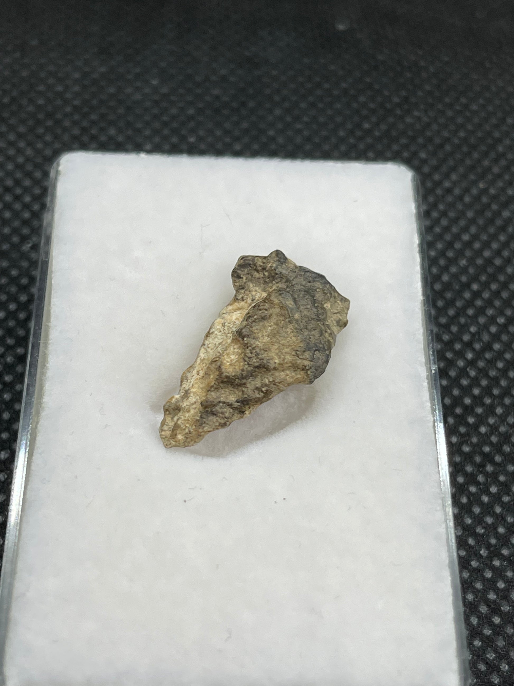 Here is a great individual fragment of a lunar meteorite. It features a great juxtaposition of a large white clast on one end and grey grassy fill and smaller clasts on the other. The white clast is pure moon rock and the grey is a glassy mass created on impact. It is uncut. Classified as NWA 12279 a Lunar feldspar breccia. It weighs 1.448 grams and it’s longest dimension is roughly .8 inches. Only 1830 grams ever found! Acquired from M. Stream and includes his COA. This comes in a rectangle gem box that measures 2 by 1.25 inches.